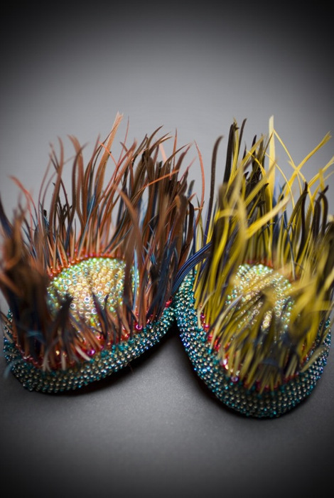| иглы дикобраза, перья ару и фламинго (предоставлены зоопарком Торонто). сосновую смолу и многие природные материалы